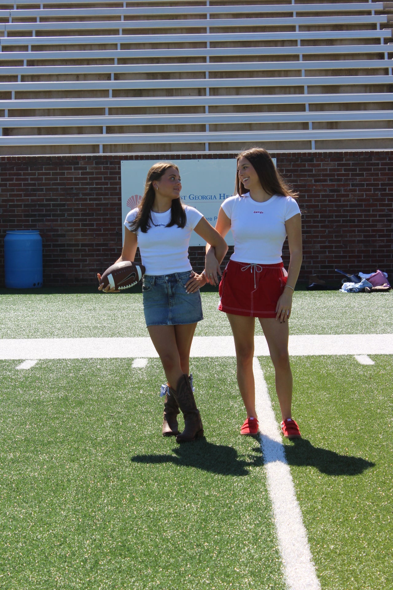 Soft cotton baby tee with a slightly cropped fit, featuring Dawgs on the chest in red writing.